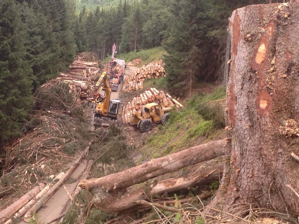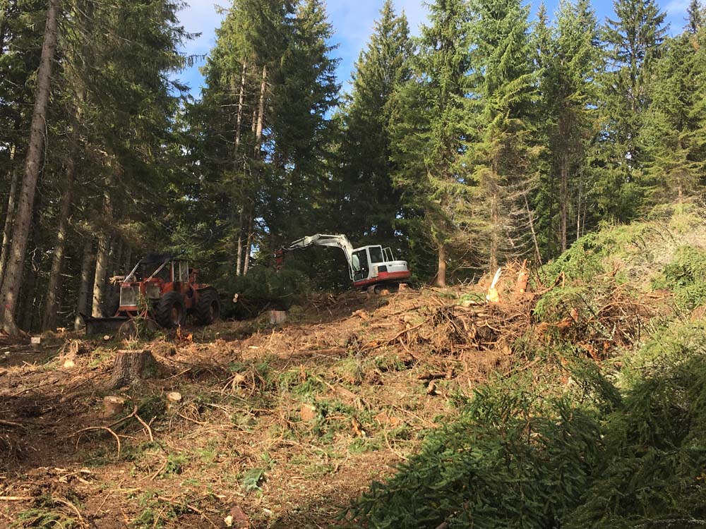 Wir setzen uns für eine nachhaltige Waldbewirtschaftung ein. Von der Wurzelstockentfernung bis zur Baumfällung und Holzbringung arbeiten wir boden- und bestandsschonend, um das Kapital Holz für die Zukunft zu sichern. Modernste Seilkräne, Fortschlepper, Prozessoren und Langstreckenbahnen erleichtern uns die Arbeit und gewährleisten eine rasche und zuverlässige Abwicklung Ihres Auftrags. Neben Forstarbeiten können Sie uns übrigens auch mit dem Fällen bzw. Entfernen von Bäumen in Ihrem Garten beauftragen.